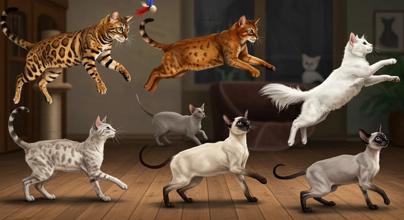 고양이도 사람처럼 성격과 에너지가 다 달라! 😺 활동량이 많은 고양이는 끊임없이 놀아주고 충분한 운동량을 채워줘야 해. 운동을 좋아하는 묘주라면, 함께 뛰어놀기 좋은 고양이 품종을 선택하는 게 좋아! 🐾