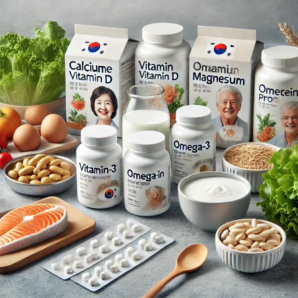 - 칼슘 – 골다공증 예방과 근육 기능 유지에 필요해요.