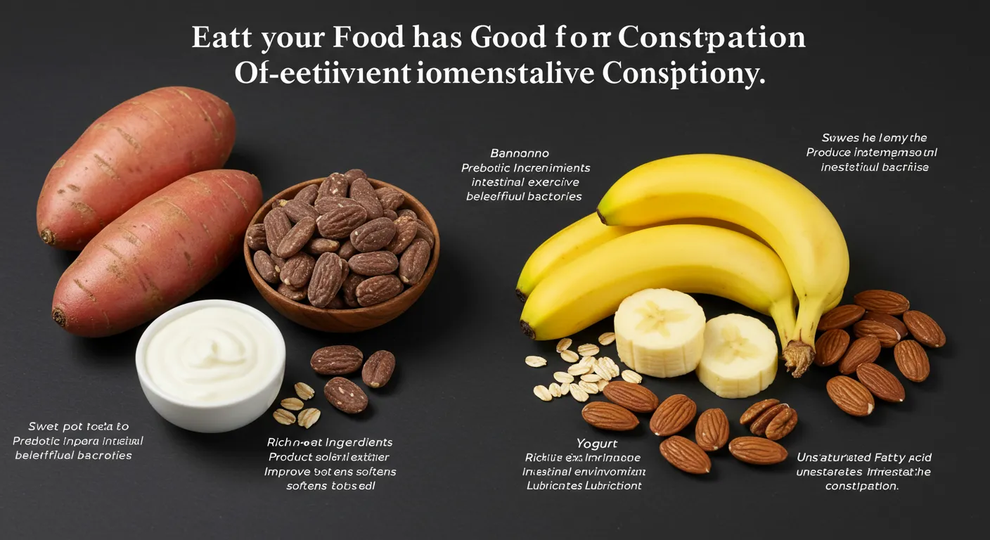 A2. 고구마, 바나나, 오트밀, 요거트, 견과류, 채소 등이 변비 해소에 좋아요. 특히 식이섬유가 풍부한 음식을 물과 함께 섭취하면 효과가 커요.